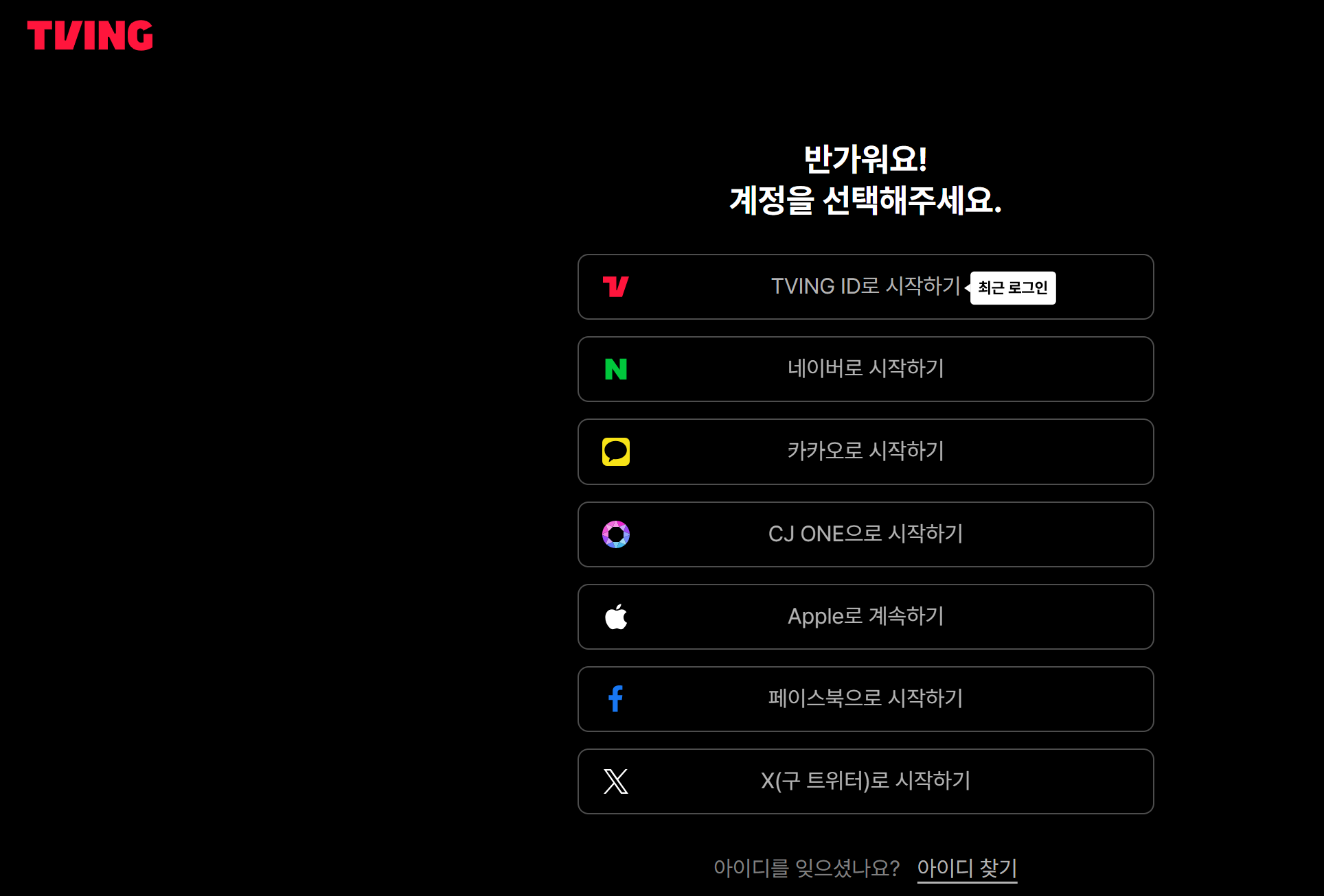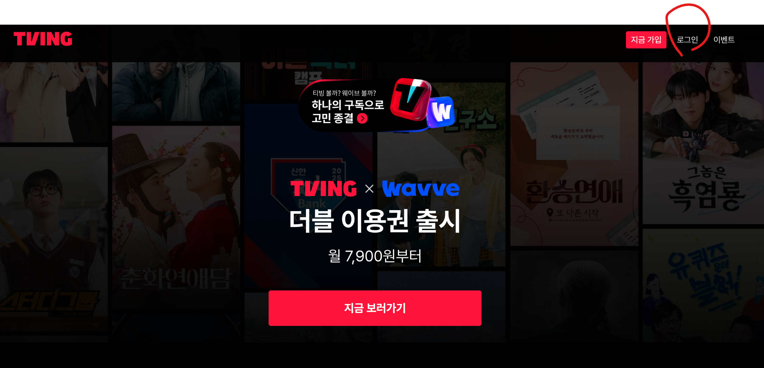 ① TVING 공식 홈페이지 또는 모바일 앱 접속